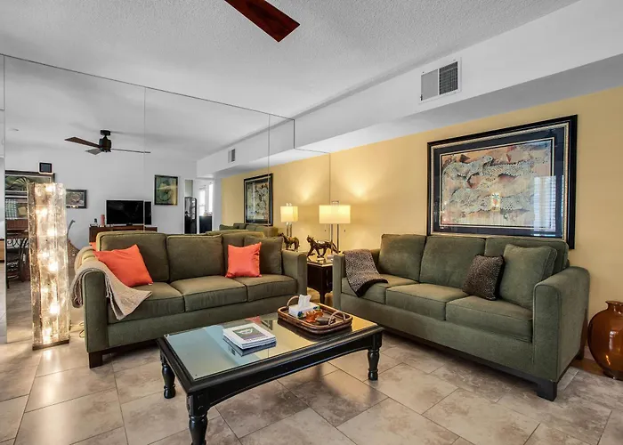 Die Villa in Palm Springs liegt im Viertel Downtown Palm Springs von Palm Springs, in etwa 500 Meter Entfernung vom Agua Caliente Cultural Museum. Diese Villa liegt in rund 6 km Entfernung von Naturattraktionen wie dem Erlebnisbad Wet'n'Wild Palm Springs. Zu den weiteren Attraktionen in der Nähe zählt das Palm Springs Art Museum Architecture and Design Center (nur 5 Minuten Fußweg von der Unterkunft entfernt).